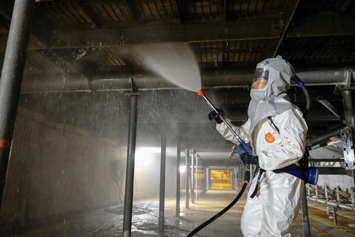 Pour assurer les conditions d’hygiène et la sécurité alimentaire, le nettoyage est un souci quotidien chez Malteurop. Comme l’explique Denis Ricart, Animateur Prévention, « dans les germoirs et dans les cuves, il y a toujours une température entre 18 et 24 degrés et un taux d’humidité proche de 100%. Ce sont des conditions idéales pour le développement des bactéries, des moisissures et des champignons ». « C’est pourquoi dès qu’une cuve de trempe ou un germoir est vide, une équipe de nettoyage javellise l’enceinte, les dessous de germoir et les systèmes de transport du grain puis procède au rinçage à haute pression avant tout nouveau remplissage de l’installation », explique Véronique Coeffier, Assistante QHSE. « Ces opérations sont particulièrement essentielles au niveau des dessous de germoir où s’effectue la ventilation, pour éviter que les trous des plateaux ne soient bouchés par des grains d’orge car sans ventilation le grain s'asphyxie ».