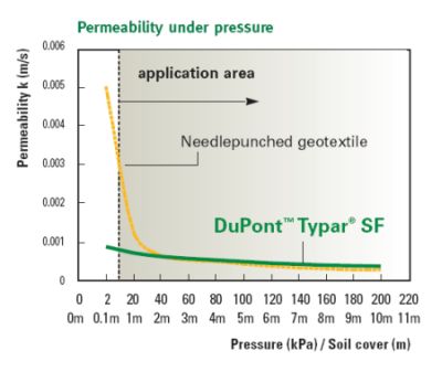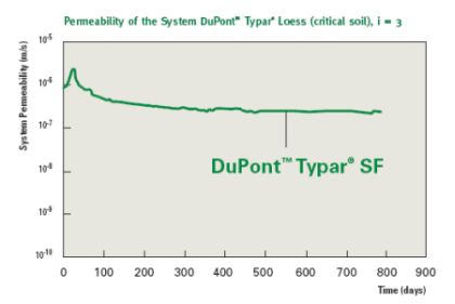 DuPont™ Typar® SF a été soumis à un test de filtration à long terme conduit par le LGA, un institut de test allemand. Dans le cadre de ce test, la performance de filtration à long terme de 5 géotextiles différents a été testée dans de grands bacs de mesure avec trois sols différents.Les géotextiles testés disposaient chacun de caractéristiques différentes quant à la perméabilité, l'ouverture des pores, l'épaisseur, la masse unitaire et le type de polymère. Dans une série de trois tests, des échantillons de 500 mm de diamètre ont été soumis à un état d'infiltration continu sous des gradients hydrauliques différents pour des périodes de 6 à 24 mois.